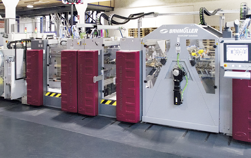 Considering this mantra as well as all plant and economic conditions Model decided in favor of the BAHMÜLLER POWERPACKER, which had previously been awarded the FEFCO Innovation Price in Bronze. Installed directly downstream of the specialty folder gluer, the POWERPACKER directly picks up the shingled stream of folded and glued boxes.